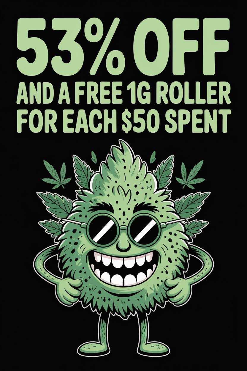 Grab 53% Off and Snag a Free 1g Pre-Roll for Each $50 Spent